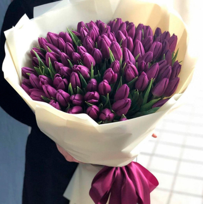Букет из 101 сиреневой розы Deep Purple под ленту