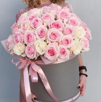 Коробка с розовыми и белыми розами | Купить в Ступино