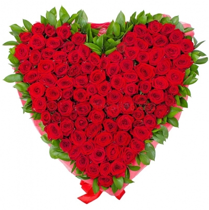 Композиция из 101 розы в виде сердца с доставкой в Ступино