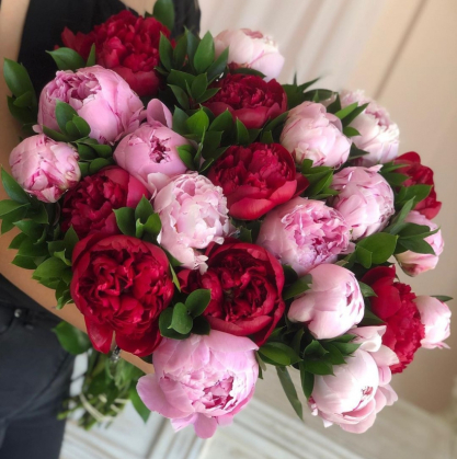 Букет из 21 розовых и красных пионов | Купить в Ступино