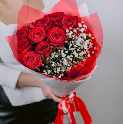 Букет из красных роз и гипсофилы | Купить в Ступино