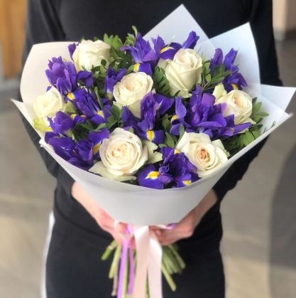 Букет с ирисами и белыми розами | Купить в Ступино