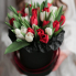 Коробка красных и белых тюльпанов | Купить в Ступино