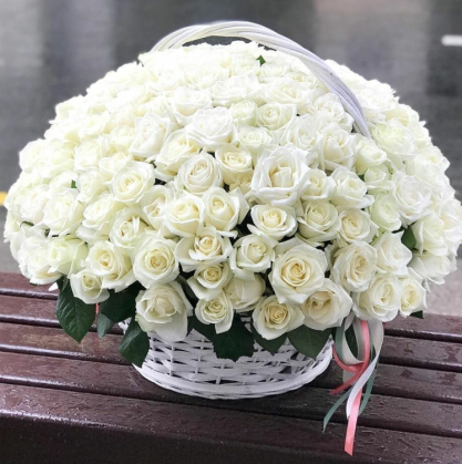 Корзина из 101 белой розы | Купить с доставкой в Ступино